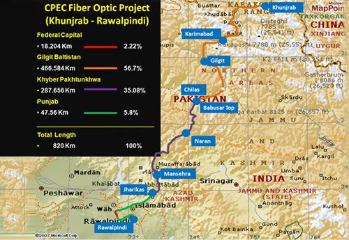 從紅其拉普到拉瓦爾品第的820公里光纜造價為4400萬美元,現已開銷2830萬美元。巴基斯坦規劃和開展部最新泄漏,項目竣工時刻是2018年12月,但或許提前完成。