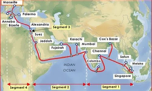 孟加拉國于2006年接入首條世界海底電纜體系,即SEA-ME-WE 4海纜,并于2017年與第第二天海纜SEA-ME-WE 5體系相連。